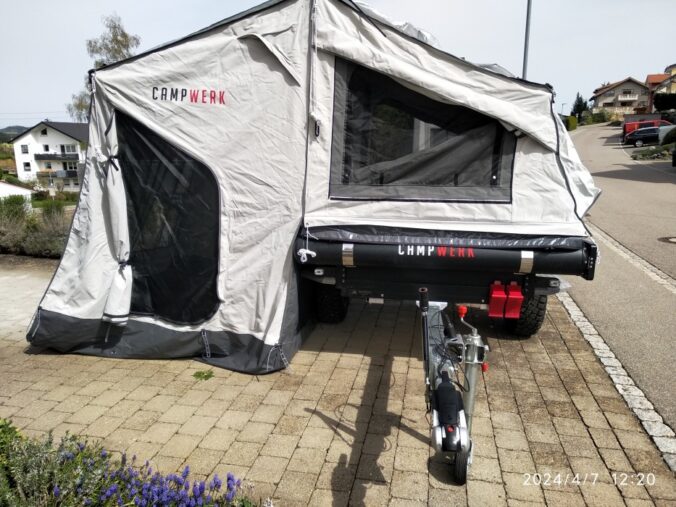 Wir haben uns November 2023 einen neuen Offroad Zeltanhänger von Campwerk gekauft und in Velbert abgeholt. 2024 sind wir ca. 5000km (4x Urlaub) mit ihm gefahren. War eine sehr schöne Zeit und hat Spaß gemacht. Die damit verbundene Flexibilität im Vergleich zu einem Wohnmobil ist unschlagbar. Leider hatte meine Frau Ende letzten 2024 einen Bandscheibenvorfall, und somit kann sie mir beim Aufbau nicht mehr helfen. Aus diesem Grund möchte wir den Anhänger schweren Herzens verkaufen, da wir uns dieses 2025 stattdessen einen kleinen Miniwohnanhänger gekauft haben.
