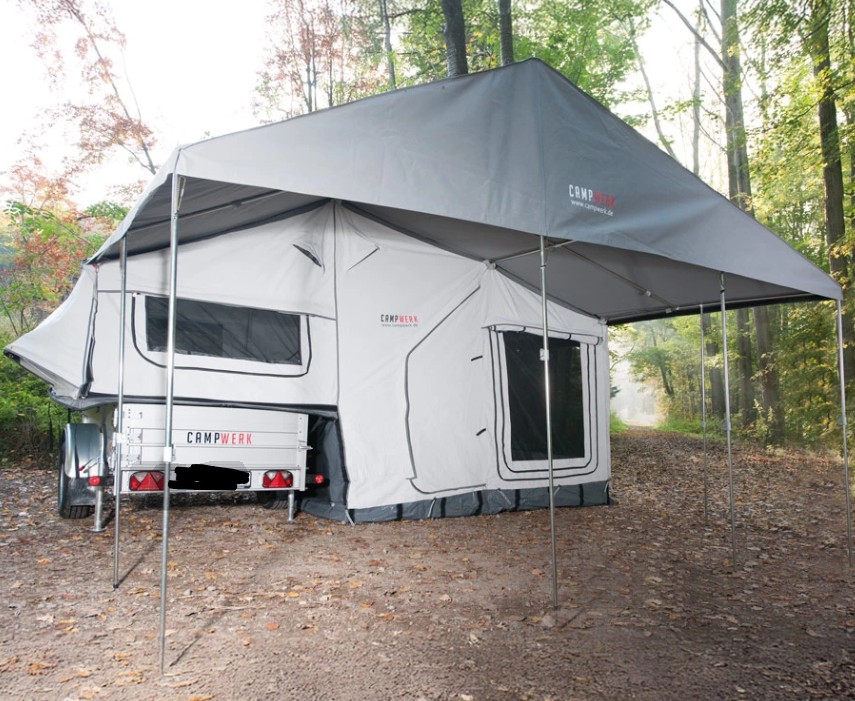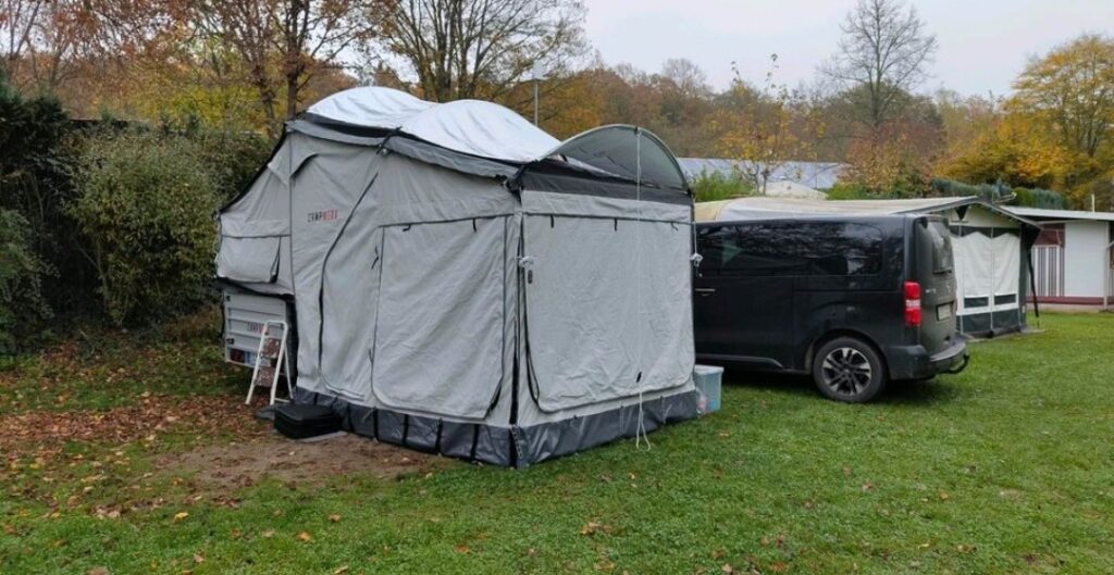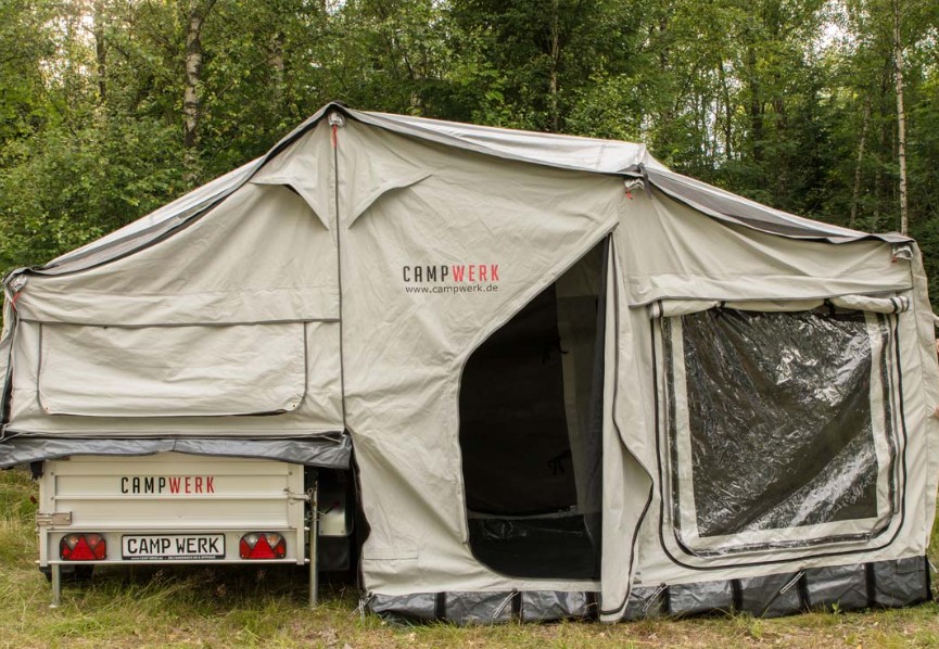 Der Zeltanhänger wurde auch noch nicht vollständig mit allen Vorzeltteilen aufgebaut. Die Bilder 1 bis 4 dienen daher der weiteren Veranschaulichung und stammen direkt von der Herstellerseite.